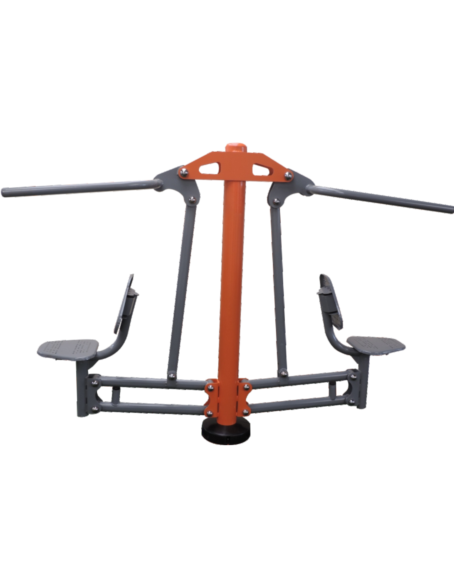 MODO DE EMPLEO: Siéntese y apoye la espalda en el respaldo de la silla, agarre las manijas en cada mano. Luego hale de ellas en forma simultánea y vuelva a la posición inicial.
