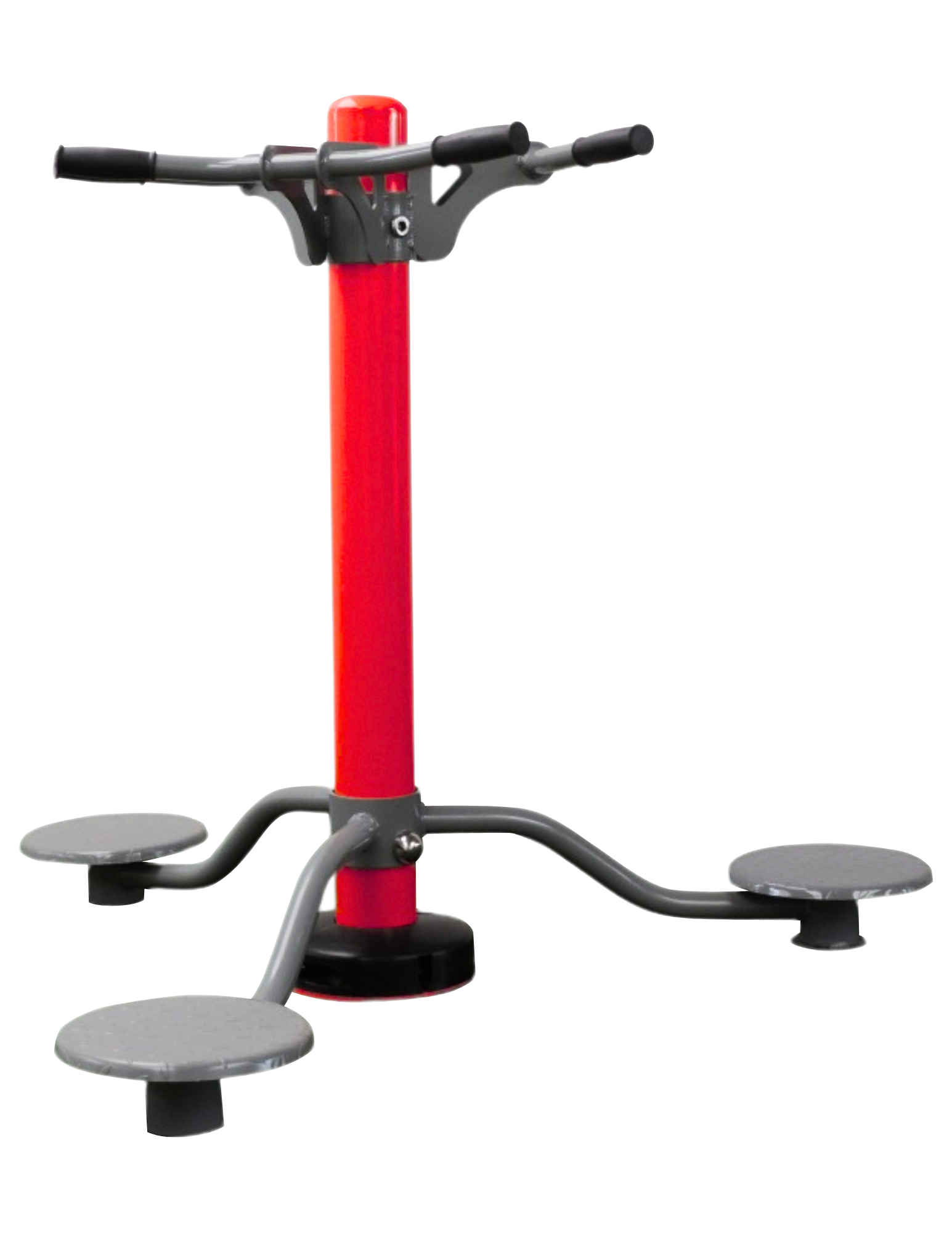 Sujete las manijas con ambas manos, apoye los pies en la plataforma y gire su propio cuerpo de lado a lado de manera regulada.