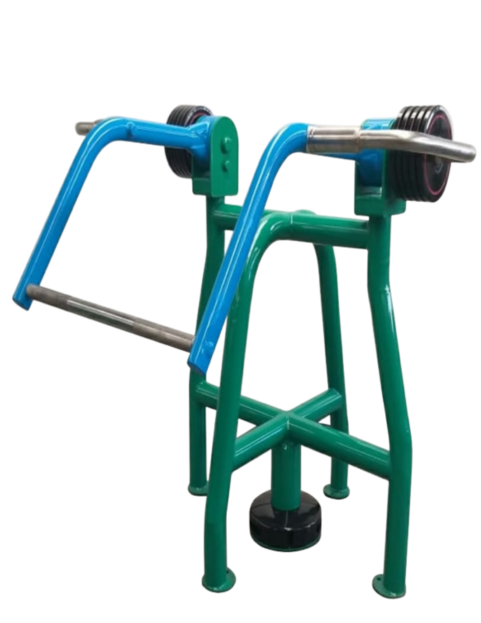 Colóquese de pie frente a la máquina, sujete las barras con ambas manos y realice el movimiento de empuje y tracción de forma controlada hasta completar cada repetición.