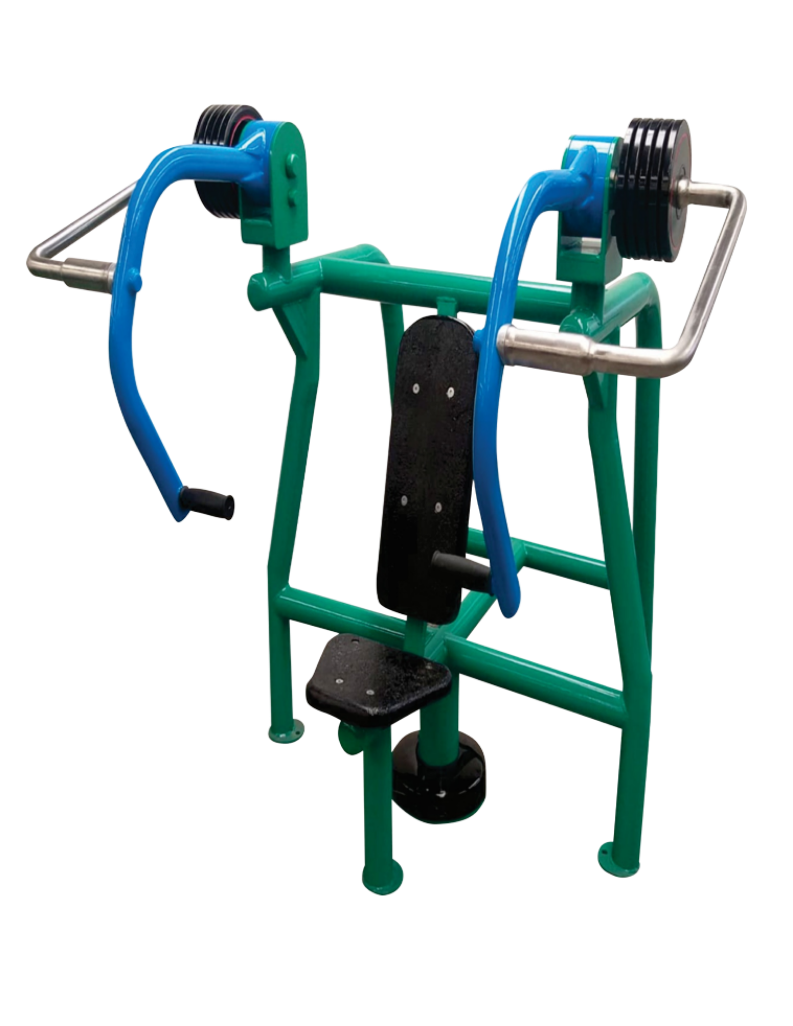 Máquina diseñada para el fortalecimiento del pecho y el tren superior, permitiendo un movimiento frontal controlado que favorece el desarrollo muscular de forma segura y eficiente.